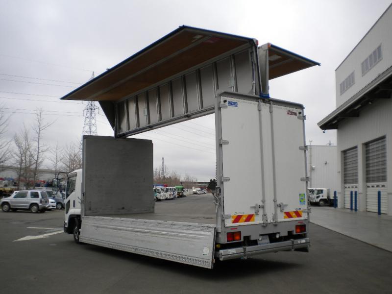 | 備考 | ウイング(フルハーフ) 格納ゲート付(新明和 RAK10 1t)アルミアオリ2方開 ラッシングレール2段 セイコーラック1対 リヤ観音 落しフック6対 ラジコン付 |