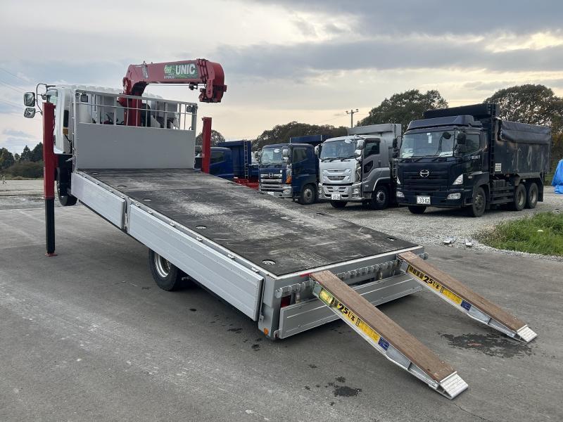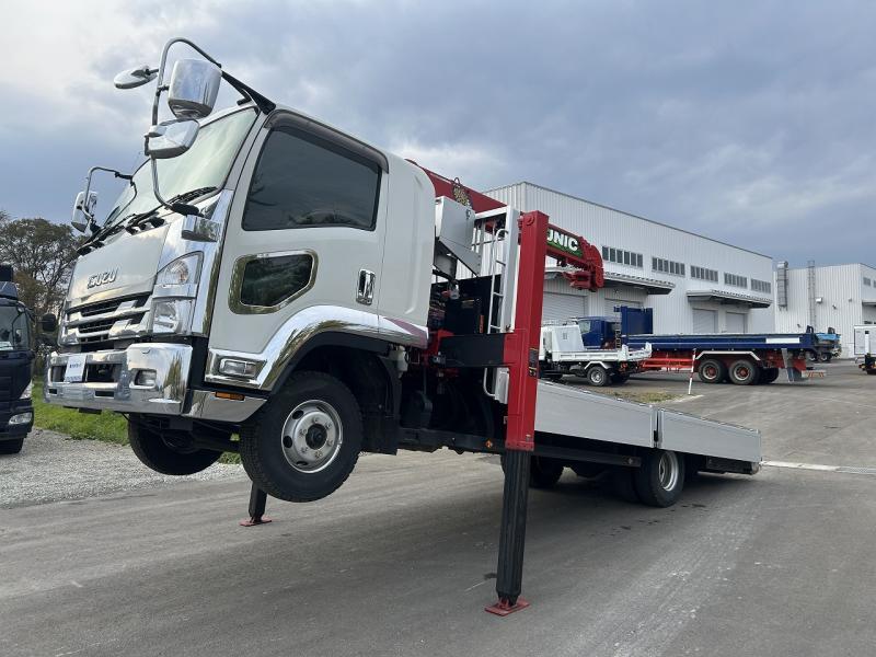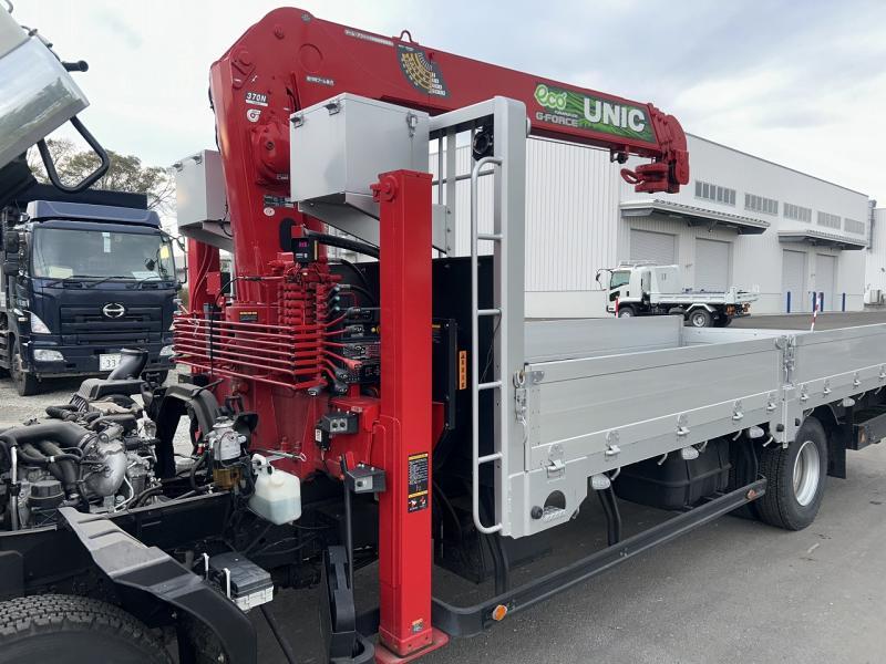 | 備考 | セルフクレーン(ユニックURG374H)4段 ラジコン フックイン ロングジャッキ アルミアオリ5方開 床木製 床フック5対 登坂板掛 登坂板付 登坂板格納BOX付 |